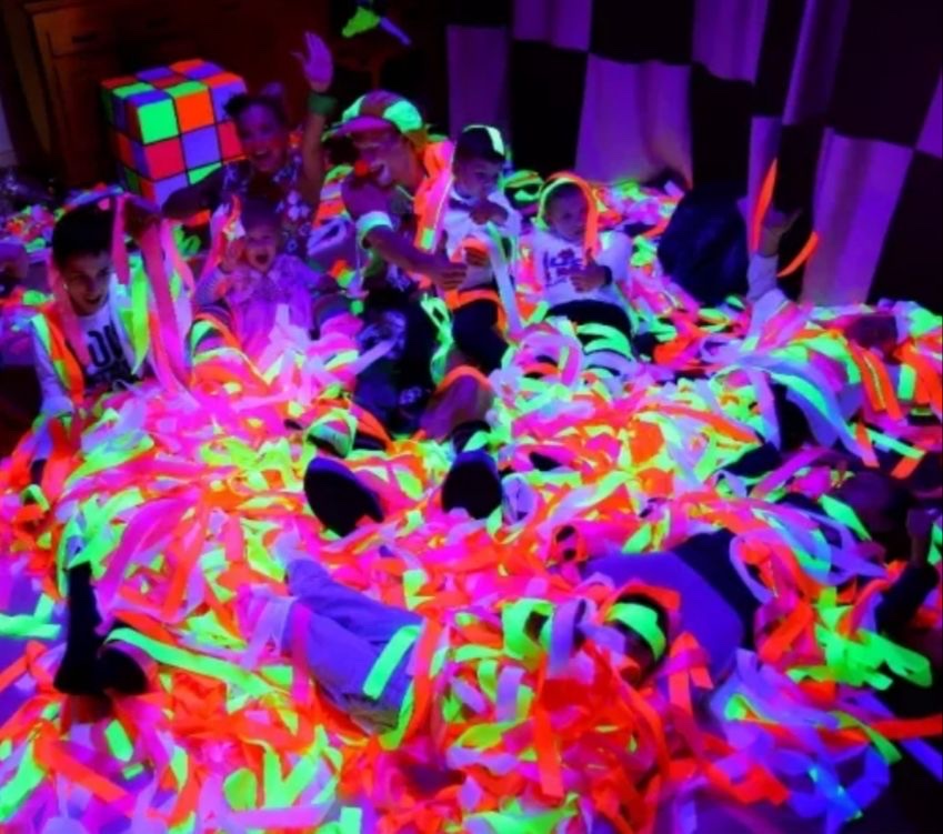 Ми доставимо на ваше свято багато яскравих стрічок, які спеціально підсвічуються ультрафіолетовими лампами. Далі починається стрічкове божевілля: стрічками можна кидатися, закопуватися в них, перекидатися, танцювати з ними, валятися, проходити через стрічкові портали, робити мега класні зачіски та спідниці зі стрічок, а також створювати феєричний салют, стрічкопад і звичайно ж не забувати робити суперкруте селфі! Стрічка шоу буде чудовим завершенням будь-якої анімаційної програми!